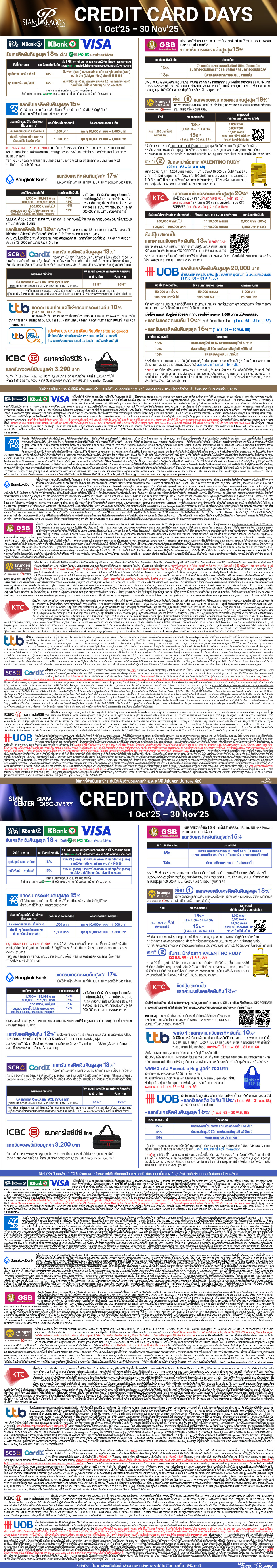 พกบัตรบัตรเครดิต มาช็อปกับรายการ Credit Card days แลกคะแนนรับเครดิตเงินคืนสูงสุด 20%, หรือ แบ่งชำระ 0% นานสูงสุด 10 เดือน เมื่อช็อปครบตามเงื่อนไข*