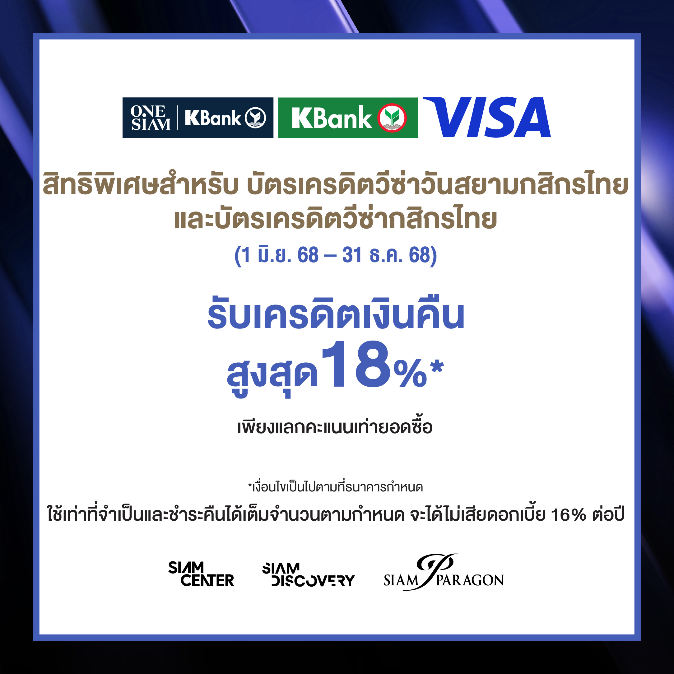 สิทธิพิเศษสำหรับ บัตรเครดิตวีซ่าวันสยามกสิกรไทย และบัตรเครดิตวีซ่ากสิกรไทย