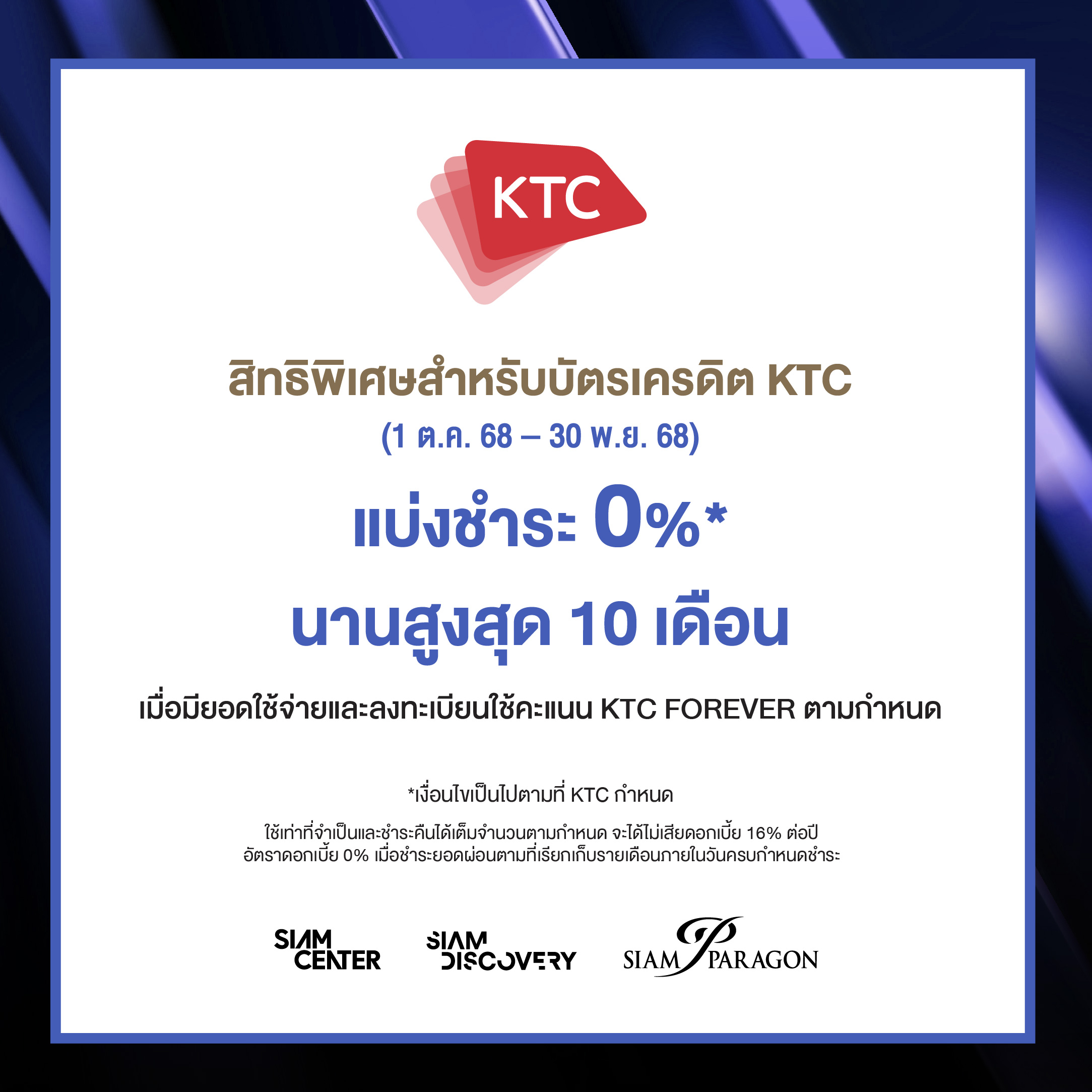แบ่งชำระ 0% นานสูงสุด 10 เดือน* เมื่อมียอดใช้จ่าย และลงทะเบียนใช้คะแนน KTC FOREVER ตามกำหนด