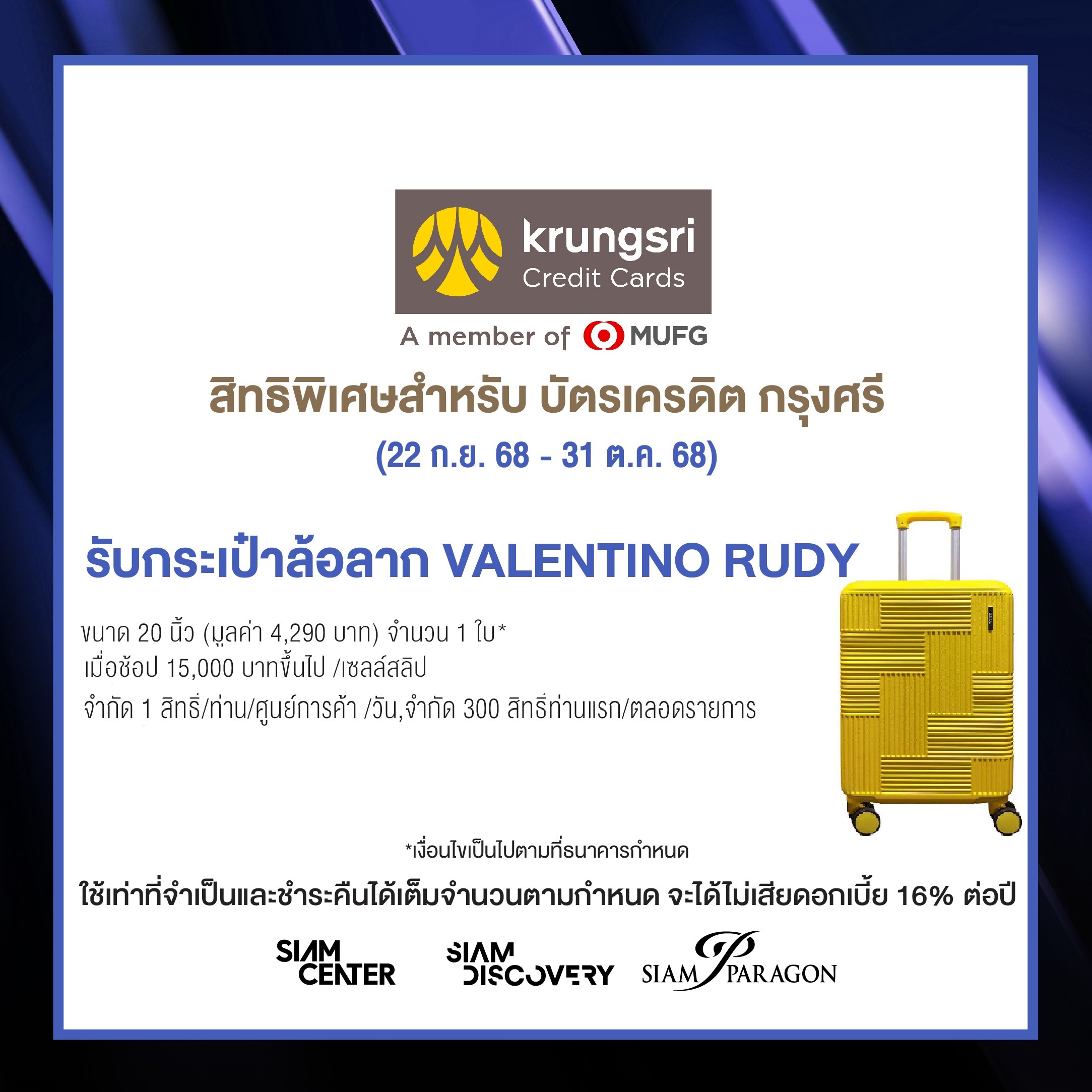 รับกระเป๋าล้อลาก VALENTINO RUDY ขนาด 20 นิ้ว (มูลค่า 4,290 บาท) จำนวน 1 ใบ*