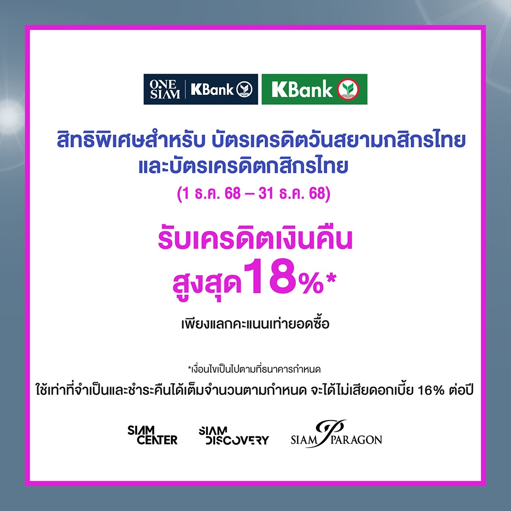สิทธิพิเศษสำหรับ บัตรเครดิตวันสยามกสิกรไทยและบัตรเครดิตกสิกรไทย