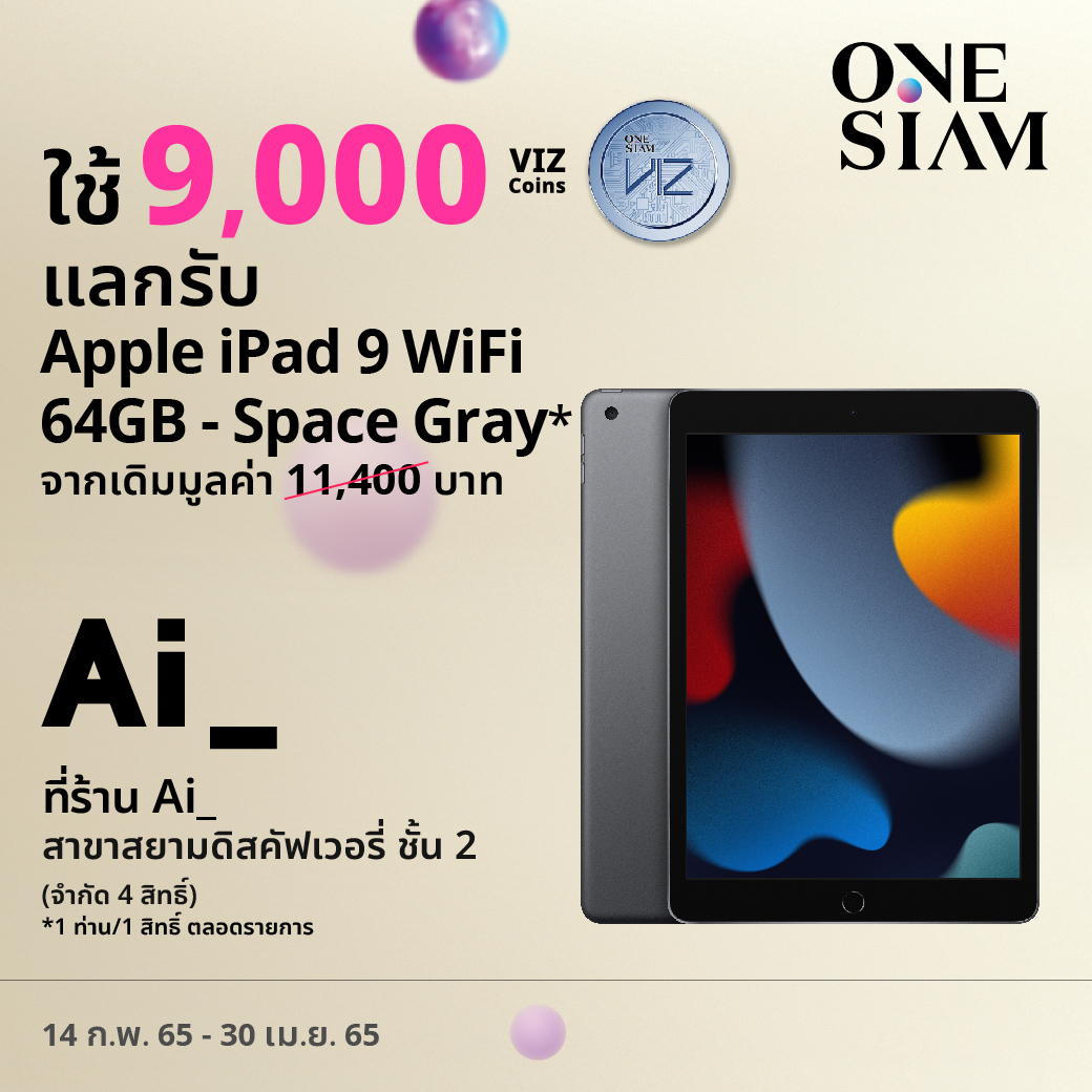 ใช้ 9,000 VIZ Coins แลกรับApple iPad 9 WiFi 64GB - Space Gray ที่ AI สาขาสยามดิสคัฟเวอรี่ ชั้น 2 (จำกัด 4 สิทธิ์)