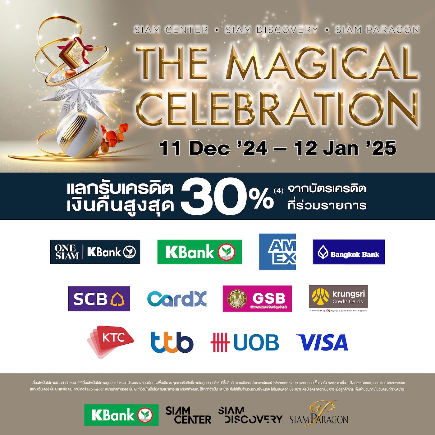 2. สิทธิพิเศษสำหรับผู้ใช้จ่ายผ่านบัตรเครดิตกสิกรไทย รวบรวมใบเสร็จจากการซื้อสินค้าและบริการจากร้านค้าที่ร่วมรายการในศูนย์ฯพร้อมเซลส์สลิปที่ใช้จ่ายภายใต้ชื่อ-สกุลเดียวกัน หมายเลขบัตรเครดิตเดียวกัน และในวันเดียวกัน ตามยอดและเงื่อนไขที่กำหนด (รวบรวมได้ไม่เกิน 3 ใบเสร็จพร้อมเซลส์สลิป/การแลกรับสิทธิ์ 1 ครั้ง) ลงทะเบียนแลกรับของรางวัล ภายในวันเดียวกันระหว่างวันที่ 11 ธ.ค. 67 – 12 ม.ค. 68 ที่เคาน์เตอร์ INFORMATION สยามพารากอน ชั้น G ฝั่ง NORTH และ ชั้น 1 ฝั่ง STAR DOME และ เคาน์เตอร์ INFORMATION สยามเซ็นเตอร์ ชั้น G และ ชั้น M และ เคาน์เตอร์ INFORMATION สยามดิสคัฟเวอรี่ ชั้น G