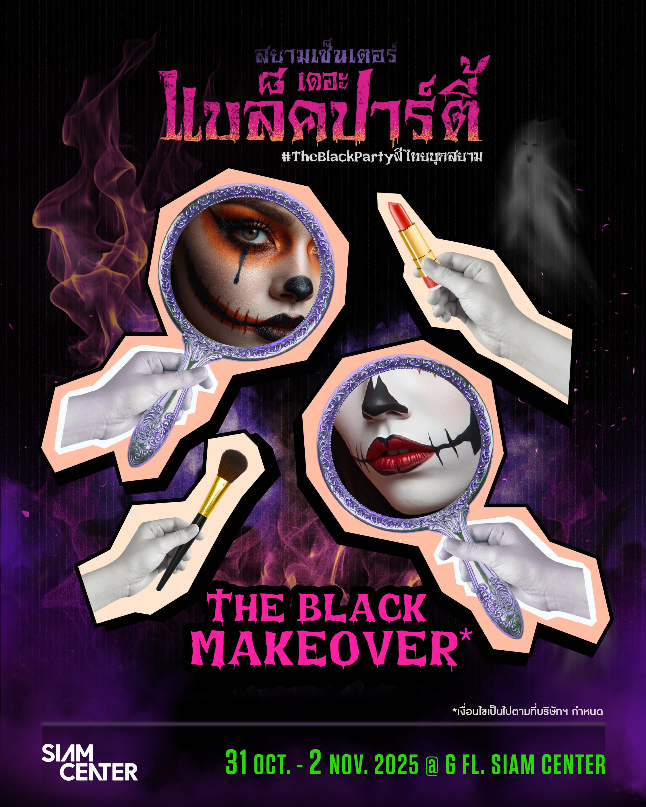 พิเศษสำหรับลูกค้าสยามเซ็นเตอร์! ช็อปครบ 500 ขึ้นไปจากร้านค้าในศูนย์ฯ นำใบเสร็จมาเติมความหลอนก่อนไปแด๊นซ์ จากแม่หมอ Make Up Artist ฟรี*!