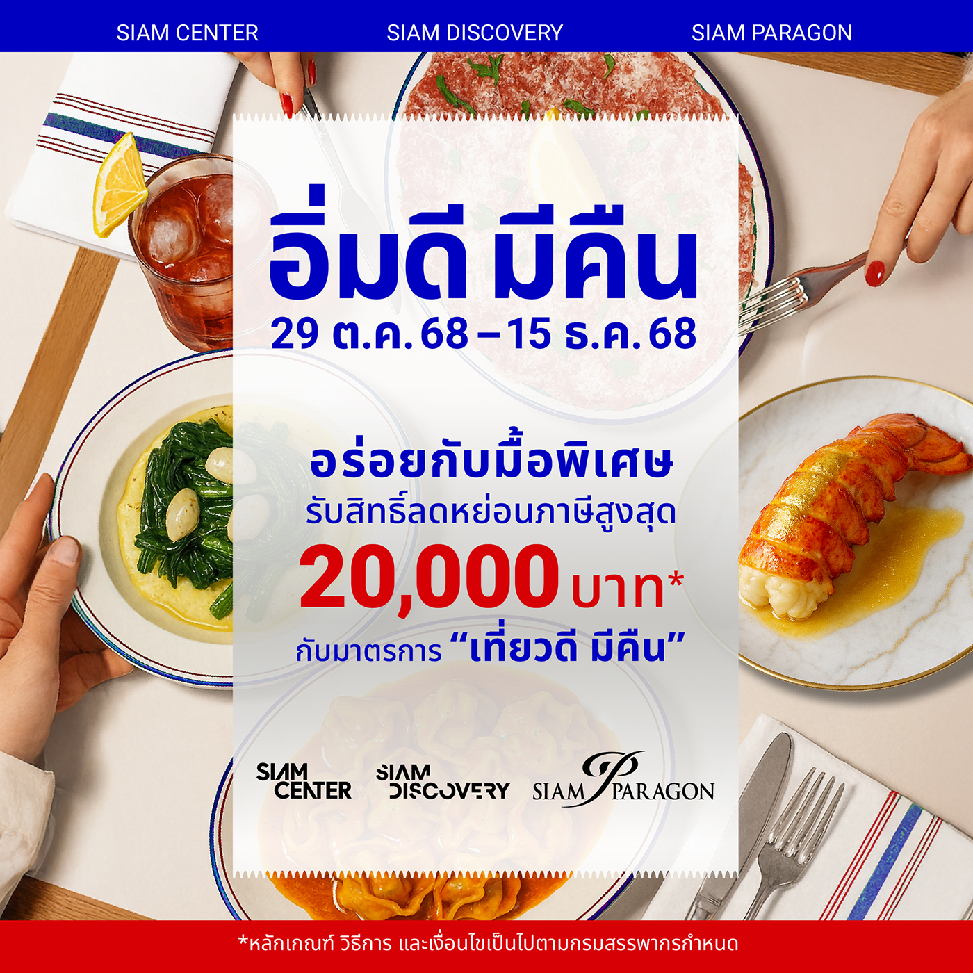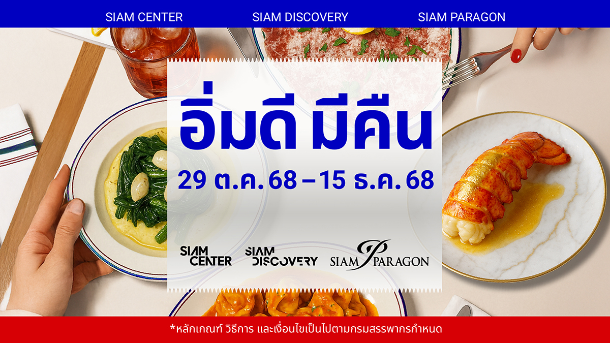 - รับทันที SIAM GIFT CARD มูลค่าสูงสุด 300 บาท เมื่อรับประทานอาหารในร้านที่ร่วมรายการ*