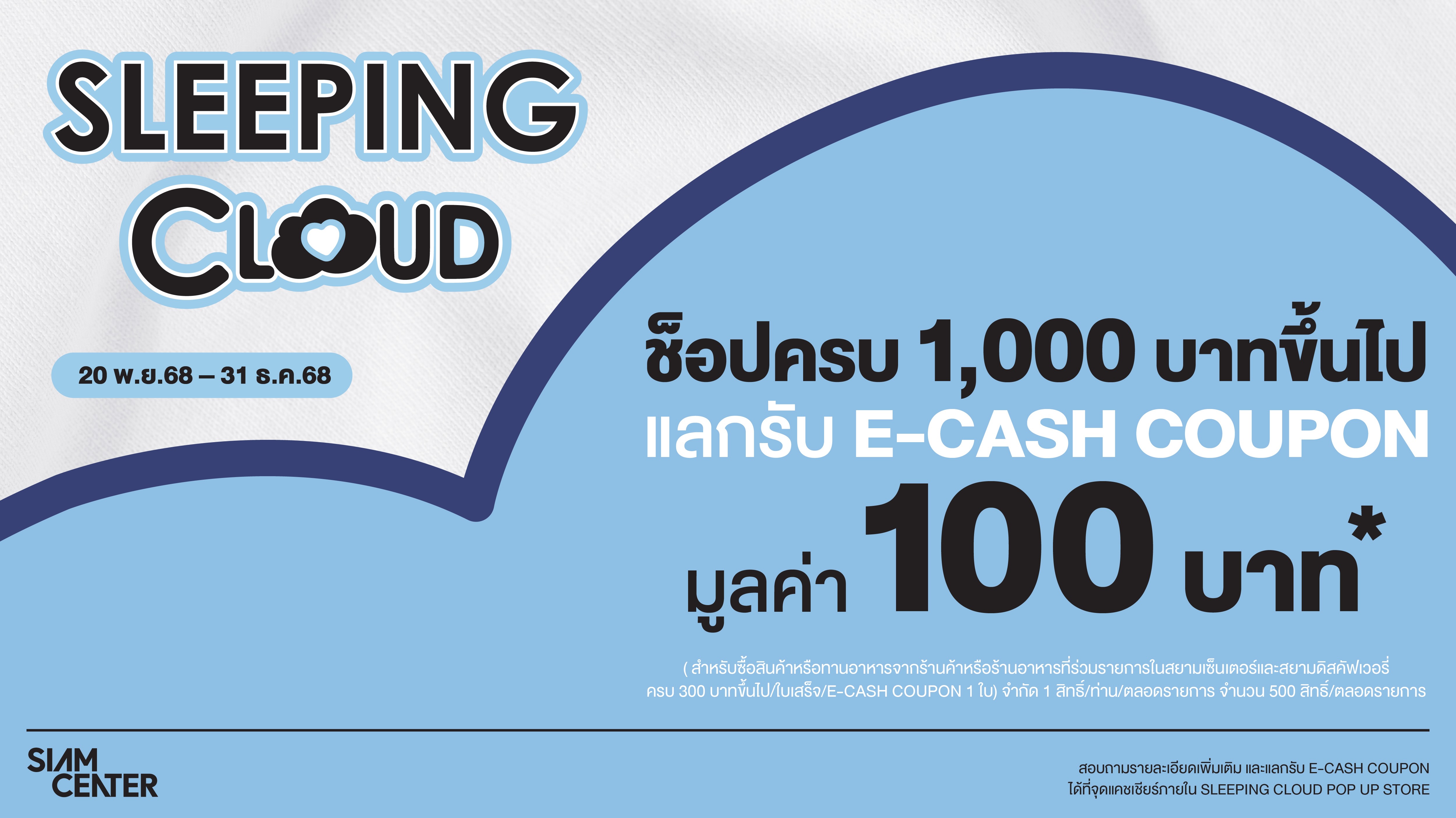 สอบถามรายละเอียดเพิ่มเติมและแลกรับ E-CASH COUPON ได้ที่จุดแคชเชียร์ภายในร้าน SLEEPING CLOUD POP UP STORE