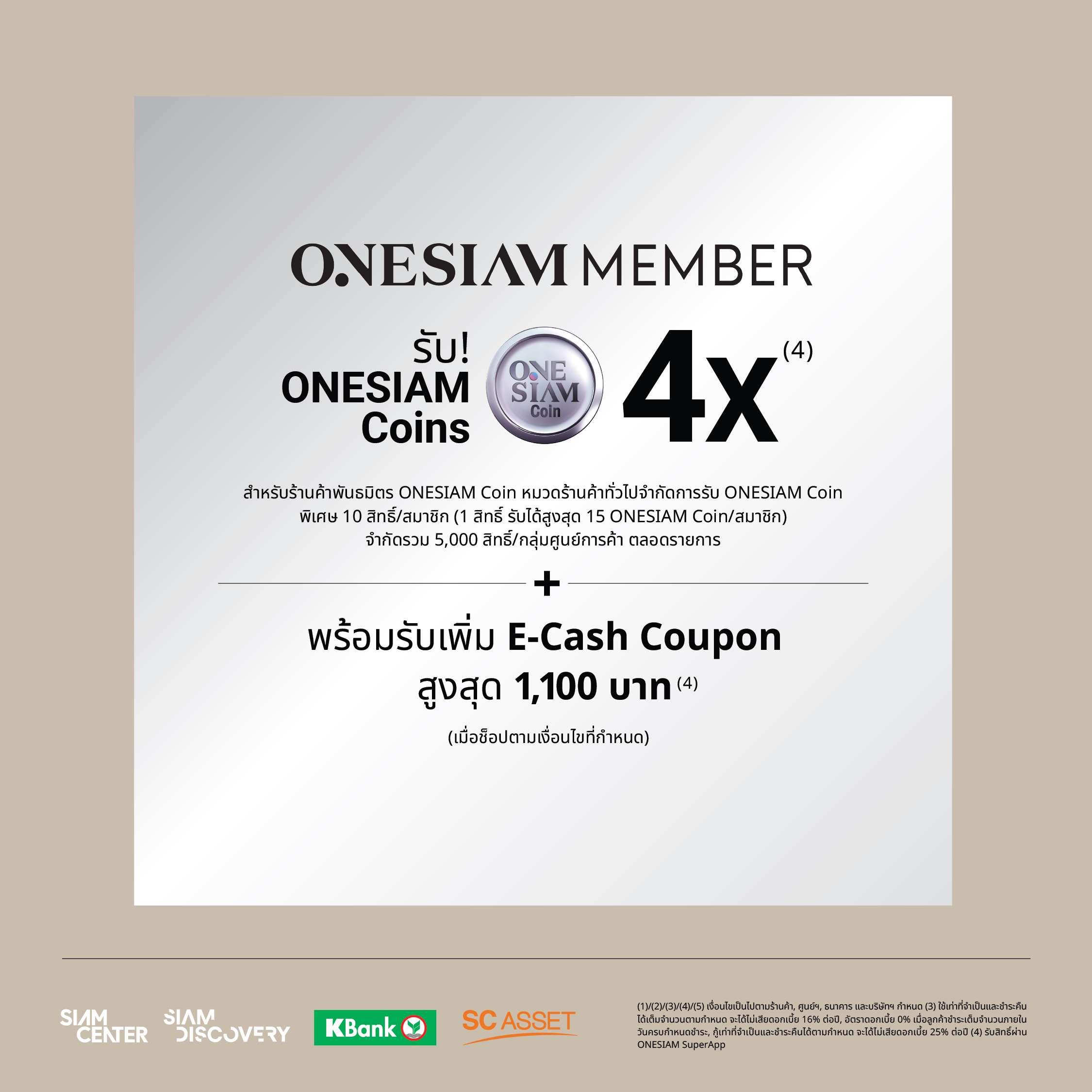 4. ONESIAM MEMBER PRIVILEGES รับ ONESIAM Coins สูงสุด 4X จากร้านค้าพันธมิตร