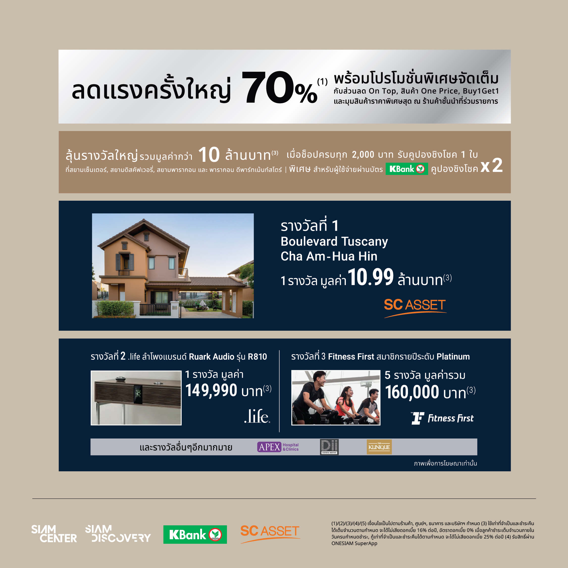 ช็อปสินค้าจากร้านค้าที่ร่วมรายการในศูนย์การค้าสยามพารากอน สยามเซ็นเตอร์ สยามดิสคัฟเวอรี่ ครบตามยอดซื้อและเงื่อนไขที่กำหนด แลกรับของรางวัลรวมมูลค่าสูงสุด 700 บาท(2)