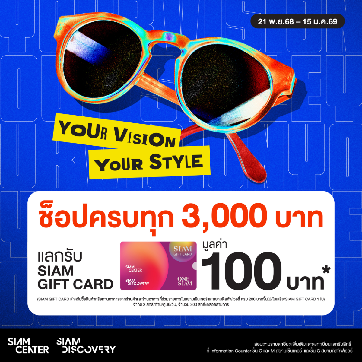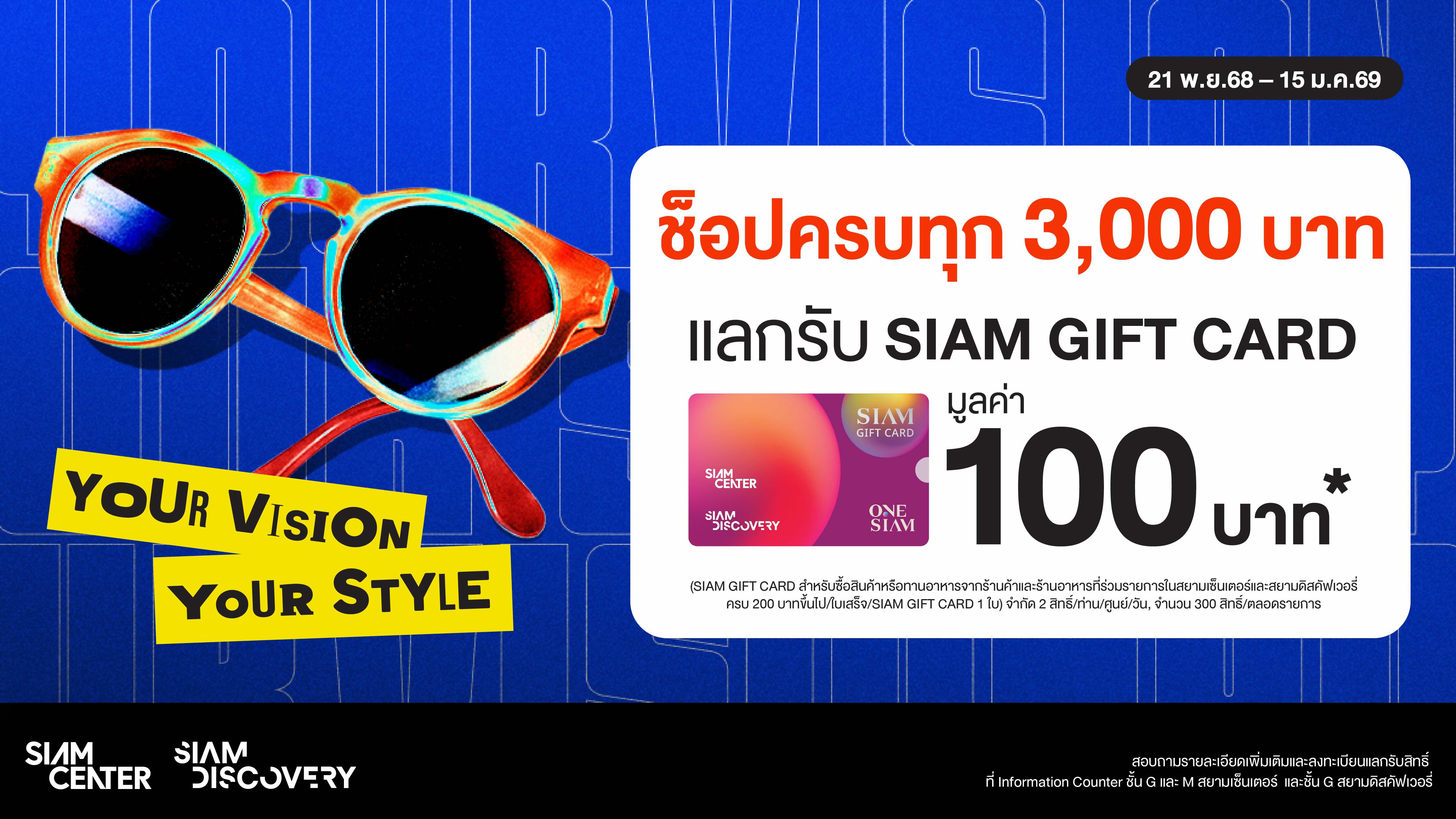 ช็อปครบทุก 3,000 บาท แลกรับ SIAM GIFT CARD มูลค่า 100 บาท