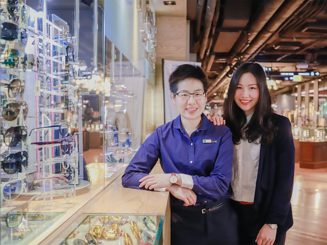 ส่วนคุณอีฟเน้นมาสายธุรกิจ เพราะเรียนด้าน Management และ Finance งานที่ทำคือใช้ดาต้าในการคิด วิเคราะห์ธุรกิจ จัดการและพัฒนางานหลังบ้าน ทั้งสองคนนี้คือเจเนเรชั่นใหม่ที่จะเข้ามาดูแลลูกค้าทุกท่าน “เราเป็นเพื่อนสนิทกันมากๆ เราโตมาด้วยกัน เราทำงานเป็นทีม ตอนเด็กๆ แอร์จำได้ว่าใส่แว่นมาตั้งแต่เด็กๆ เพราะไม่เห็นกระดานที่โรงเรียน รู้สึกว่าเด็กที่เรียนไม่เก่งอาจจะไม่มีปัญหาอะไรนอกจากมองไม่เห็นเท่านั้นเอง สมมติคนเล่นกีฬาไม่จำเป็นต้องใส่แว่น แต่เราสามารถสนันสนุนให้เขาใส่คอนแทคเลนส์ให้เขามีความสามารถเพิ่มทักษะการเล่นกีฬา เราเติมเต็มตรงนั้นได้ไม่ว่าจะเด็กหรือคนแก่ มันสำคัญนะ ถ้าเราได้ช่วยอะไรให้คนอื่นได้ อนาคตต่อจากนี้ต้องได้ใช้ประสบการณ์จากประเทศอังกฤษที่เราฝึกฝนมา ตั้งแต่วิธีการวัดสายตาในแบบนักทัศนมาตรจริงๆ เพราะผู้เชี่ยวชาญจริงๆ ในประเทศไทยมีน้อยมาก เราเลยตั้งมาตรฐานเท่าเดิมจากที่ทำในอังกฤษแบบที่เราได้ใบประกอบของที่นั่นอยู่ ต้องรักษามาตรฐานนั้นเอาไว้”